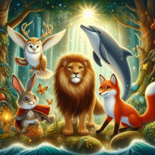 Masalcı Dede Ekim 26, 2024 0 Yorumlar A fantastical forest with a wise owl, a brave lion, a clever fox, and a skilled dolphin